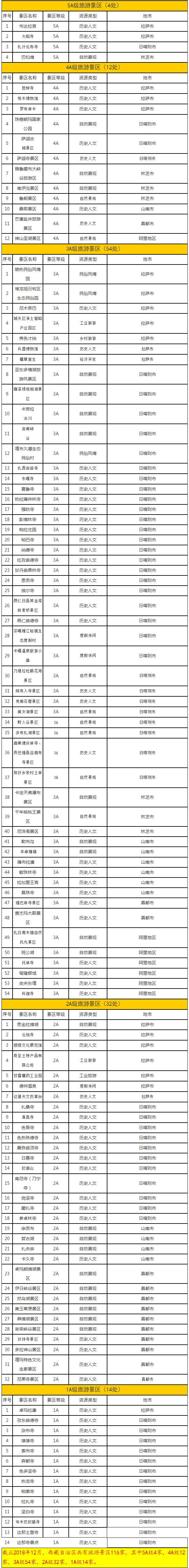 為使游客獲得更便捷舒適的旅游體驗,記者檢索到西藏自治區(qū)A級旅游景區(qū)名錄。