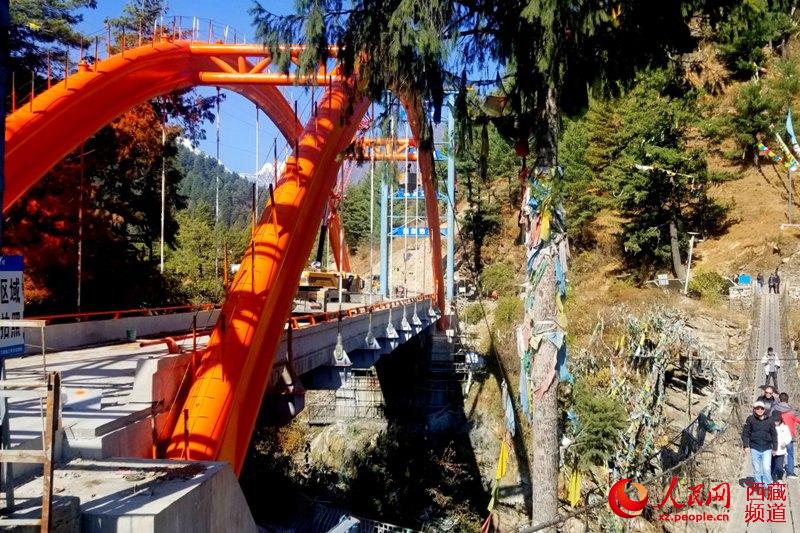 吉普村的門(mén)戶:畫(huà)面右側(cè)為仍在使用的鋼索吊橋。柴濟(jì)東攝