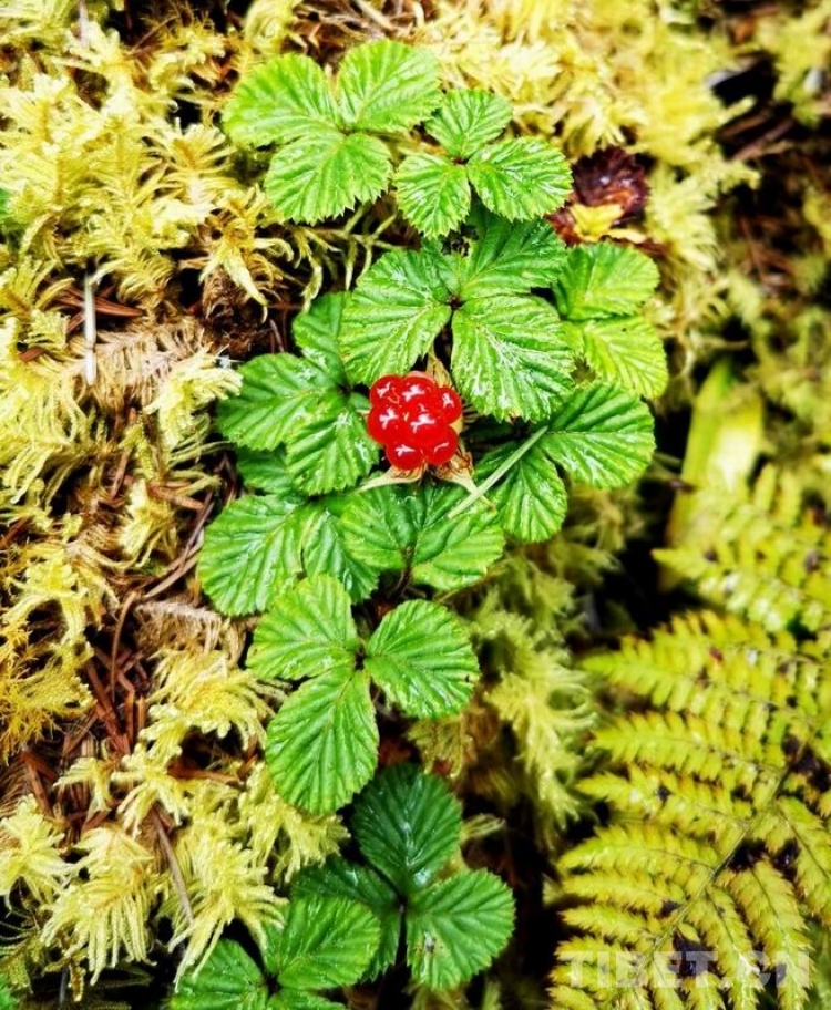 在草叢中偶爾會發(fā)現(xiàn)紅艷艷的刺莓果瑪瑙似的惹人饞,這是我兒時的最愛,放在嘴里酸甜酸甜的。