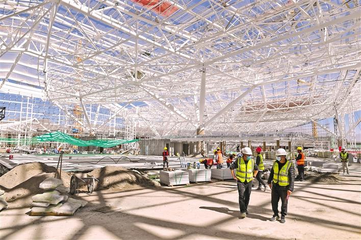 圖為新建航站樓項目施工現(xiàn)場。記者 丹增群培 攝