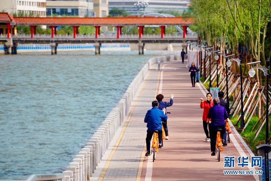 市民在河邊騎行健身。圖片由西寧市委宣傳部提供