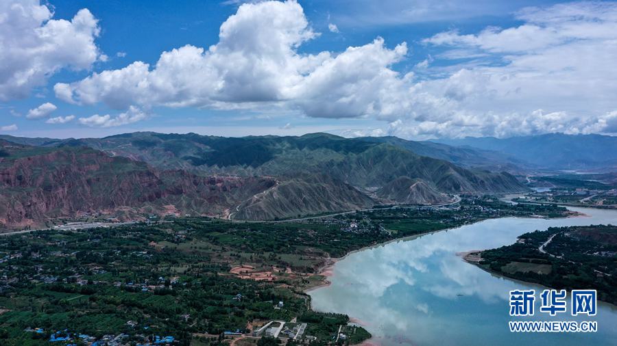 這是7月10日拍攝的位于海東市化隆回族自治縣境內(nèi)的黃河及沿岸景觀(無人機(jī)照片)。新華社記者 吳剛 攝