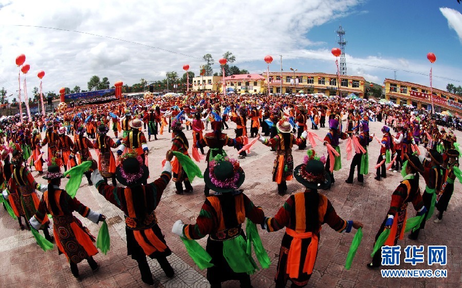 海東市互助縣的群眾在跳千人安召舞。新華社發(fā)