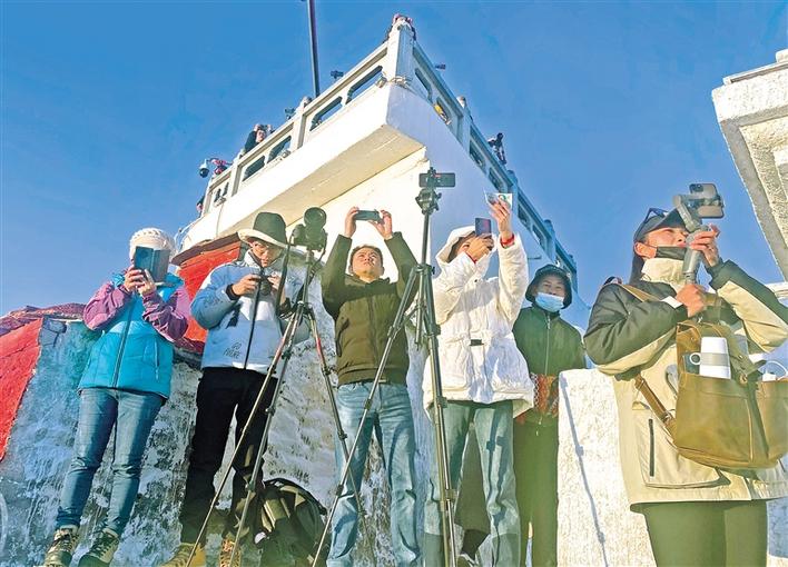 圖為游客在布達(dá)拉宮廣場觀景臺(tái)上拍攝布達(dá)拉宮。 記者 洛桑 攝