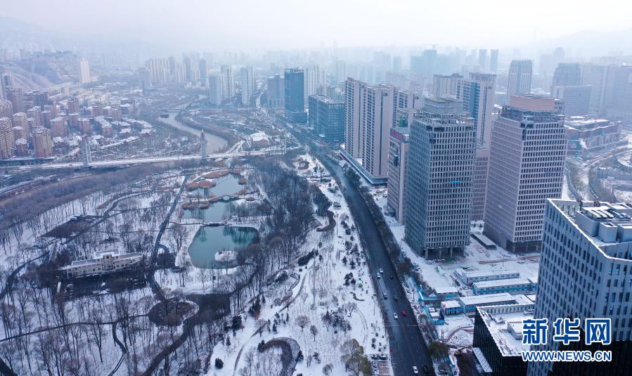 受北方冷空氣影響,11月20日夜間,青海省東北部出現(xiàn)降雪、降溫天氣過(guò)程。雪后從空中俯瞰,高原古城西寧被白雪覆蓋。