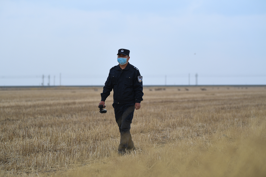 11月20日,秦輝武在特護(hù)區(qū)內(nèi)巡查。新華網(wǎng) 潘彬彬攝