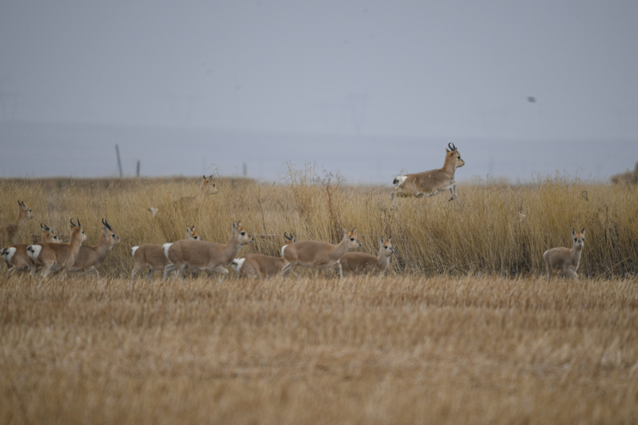 11月20日,一群普氏原羚在青海湖普氏原羚特護(hù)區(qū)內(nèi)活動(dòng)。新華網(wǎng) 潘彬彬 攝