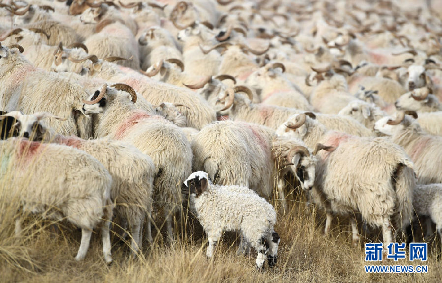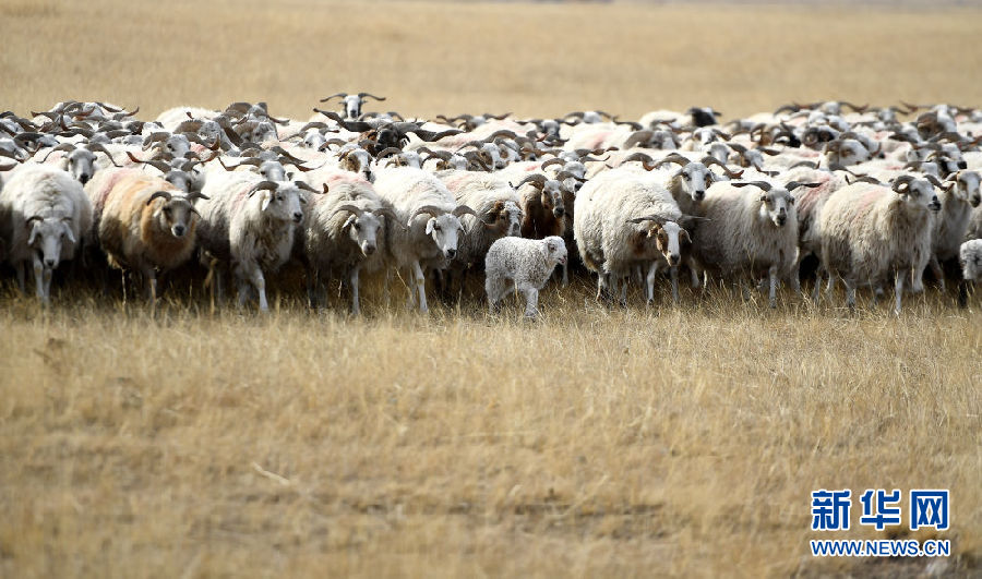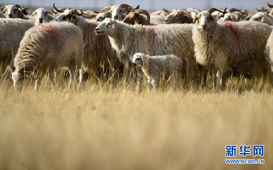 初冬時節(jié),一場小雪浸潤了青海湖北岸的草原,披著薄紗的草原草色金黃,這里成為母羊產(chǎn)羔的大“產(chǎn)房”。