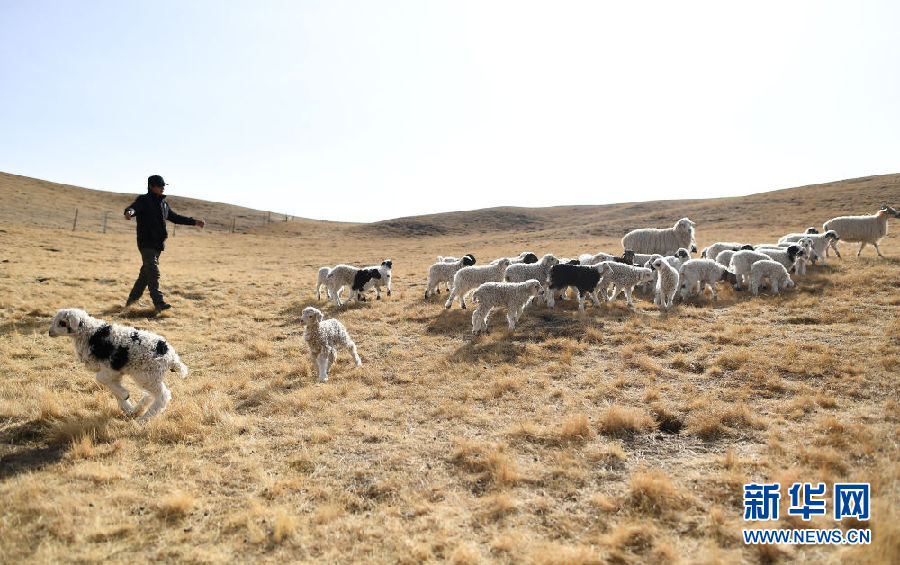 在青海省剛察縣泉吉鄉(xiāng)寧夏村,達(dá)日杰家的小羊羔在草場上(11月12日攝)。新華社記者 張宏祥 攝