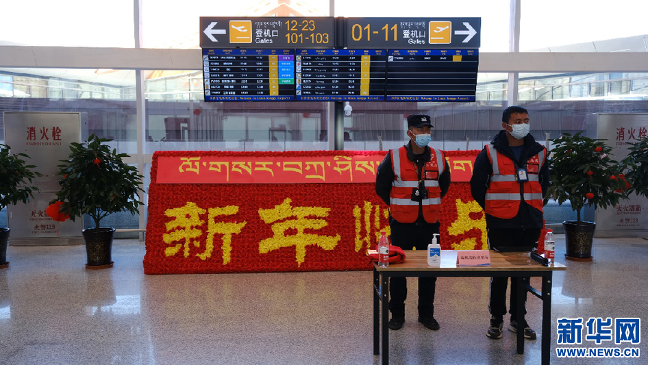 圖為拉薩貢嘎機場T3航站樓內(nèi)志愿者服務(wù)點(1月17日攝)。新華網(wǎng) 柑丹鴦琦 攝