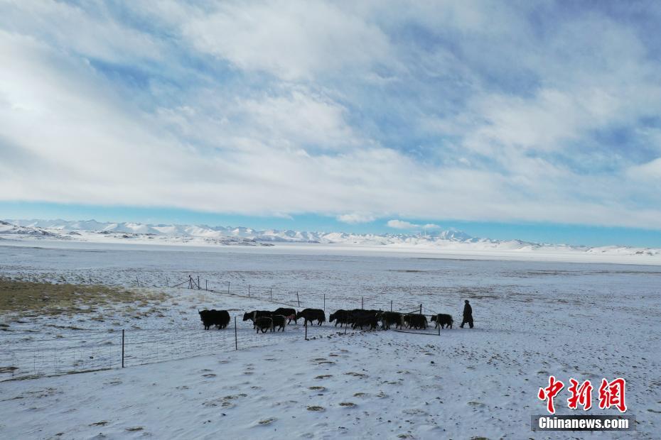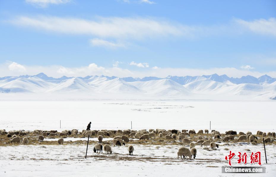 1月26日,牧民在納木錯(cuò)湖邊放牧。雪后的西藏納木錯(cuò)銀裝素裹,美景如畫。 中新社記者 貢嘎來松 攝