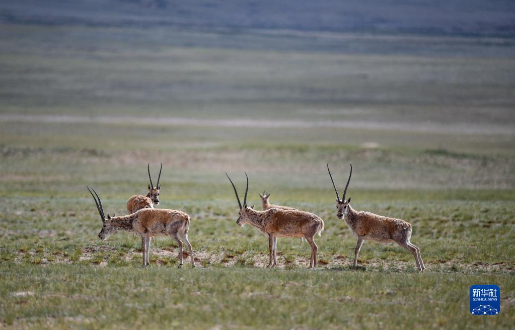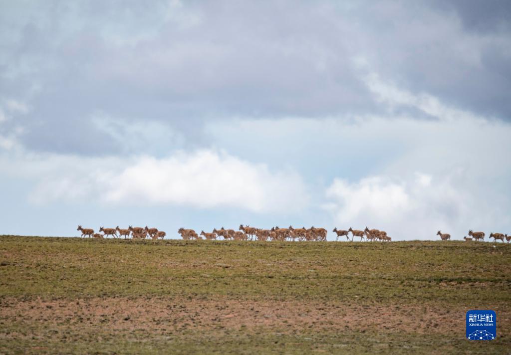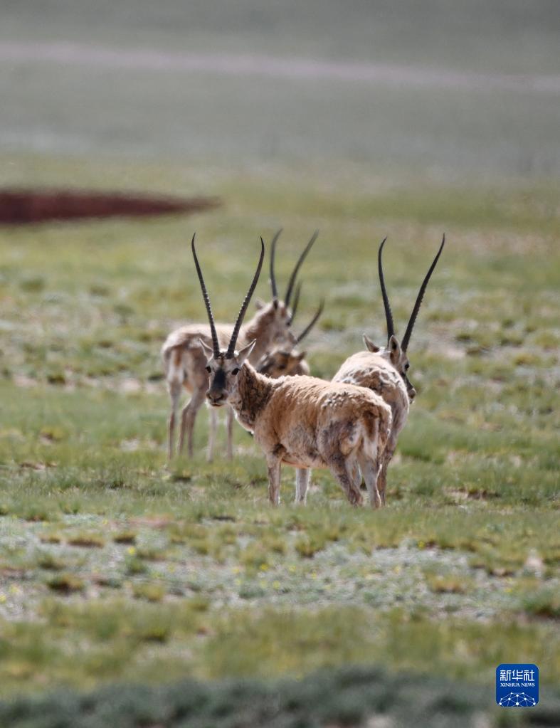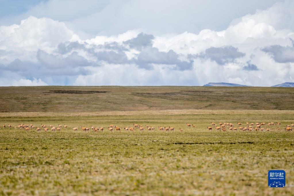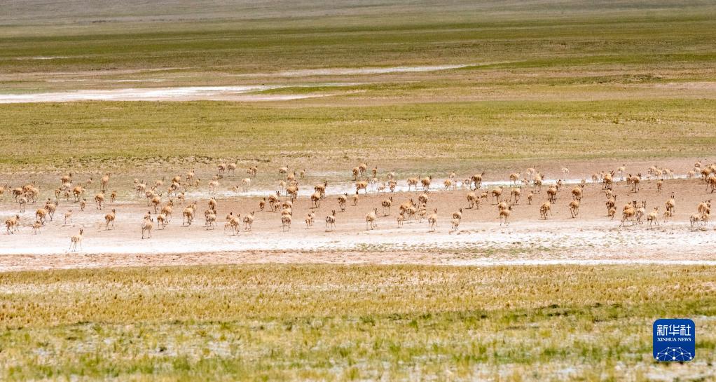 這是在羌塘國(guó)家級(jí)自然保護(hù)區(qū)內(nèi)拍攝的藏羚羊(7月11日攝)。新華社記者 周荻瀟 攝
