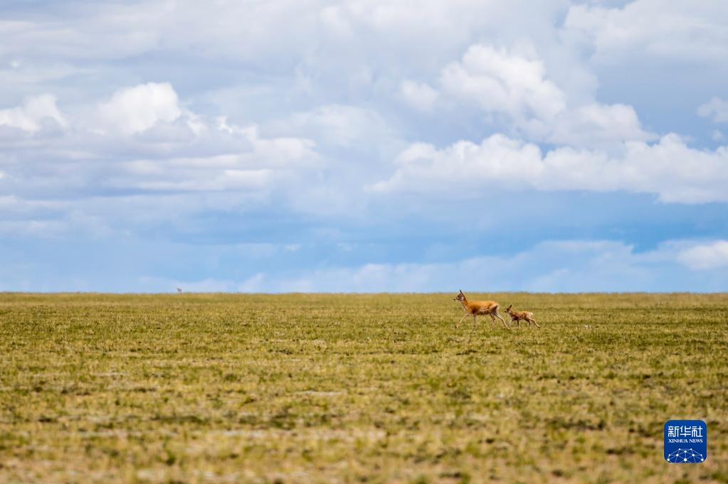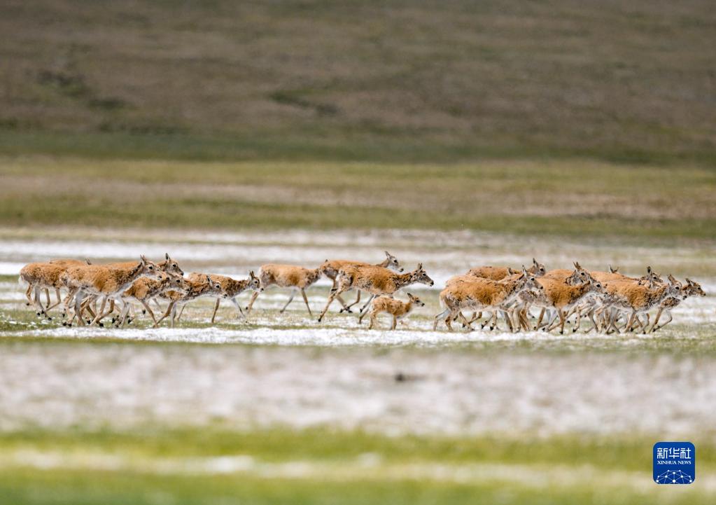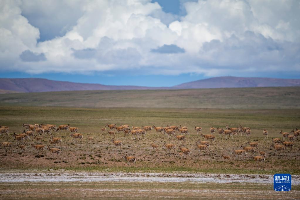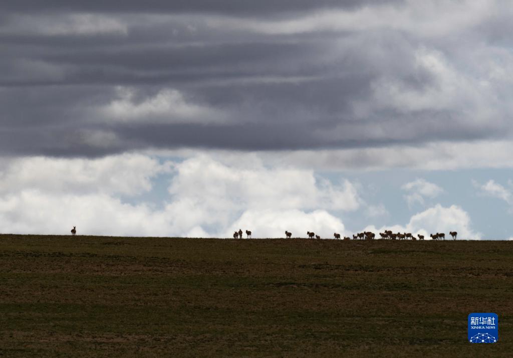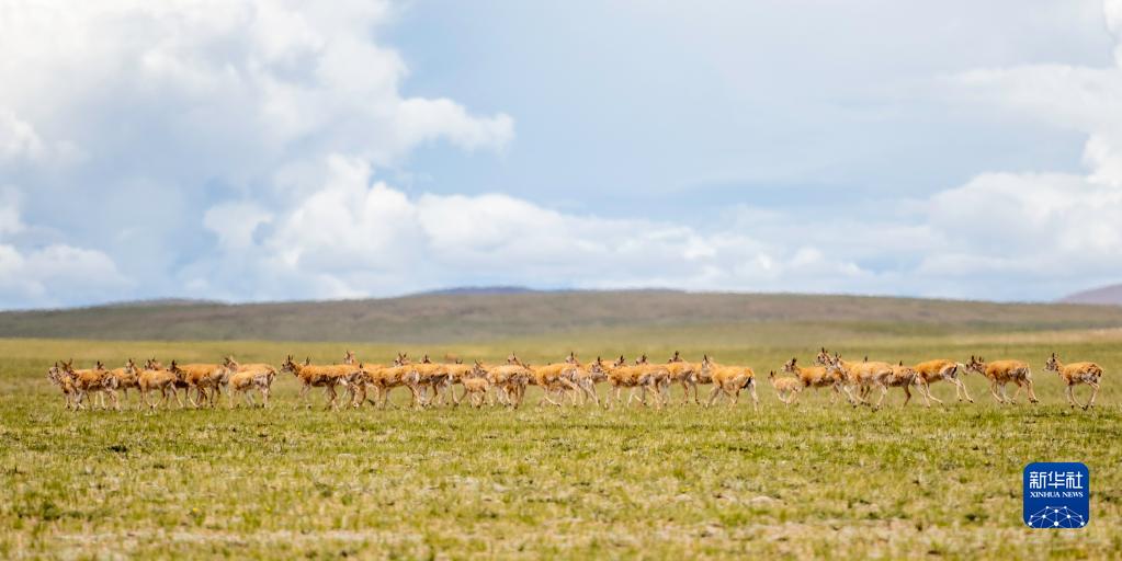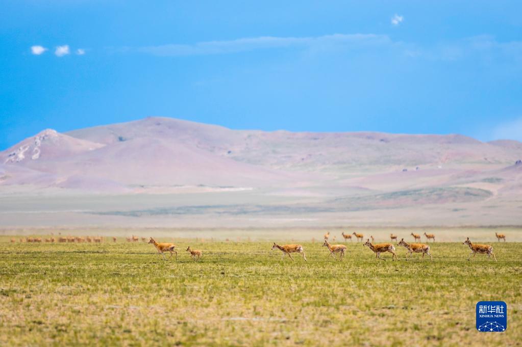 這是在羌塘國(guó)家級(jí)自然保護(hù)區(qū)內(nèi)拍攝的藏羚羊(7月11日攝)。新華社記者 周荻瀟 攝