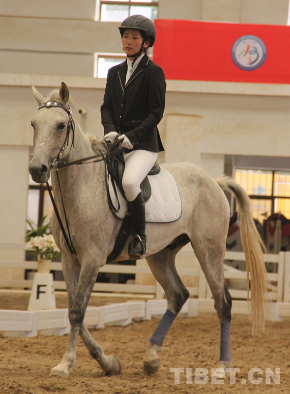 圖為7月15日競技馬術項目盛裝舞步比賽現(xiàn)場 攝影:德吉卓嘎