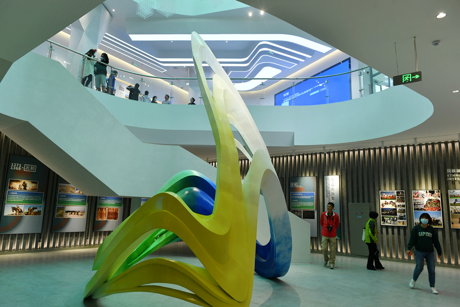 圖為祁連山國(guó)家公園青海片區(qū)展陳中心內(nèi)的多元文化板塊。