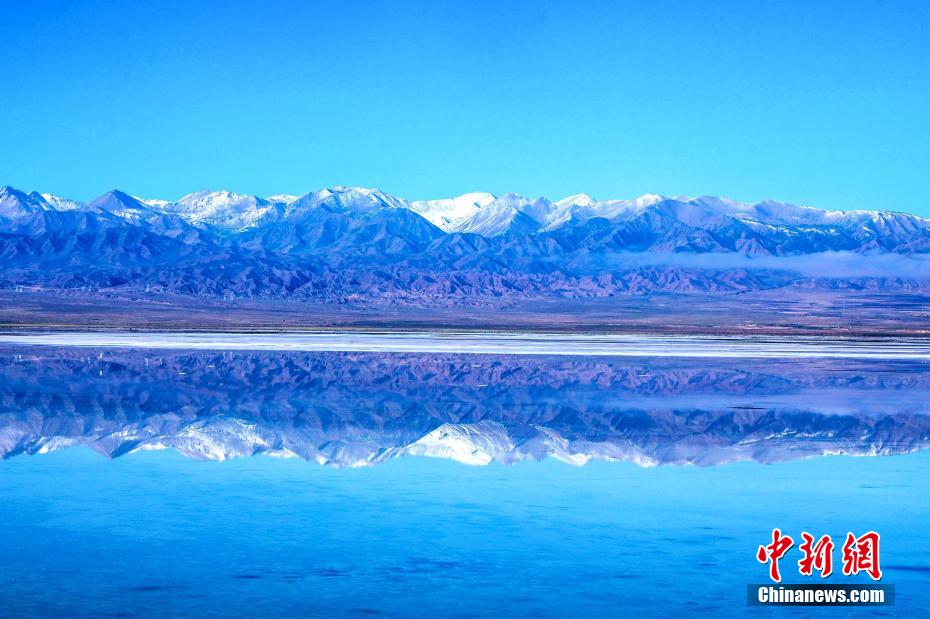 深秋已至,位于青藏高原的茶卡鹽湖,湖水逐漸純凈,鹽層開始結(jié)晶,平靜的湖面如同一面天然鏡子,反射著美麗的天空與遠(yuǎn)處的雪山,形成水天一色的景象。茶卡鹽湖位于柴達(dá)木盆地的青海省海西蒙古族藏族自治州烏蘭縣茶卡鎮(zhèn)境內(nèi)。湖面海拔約3100米,湖面面積105平方公里。這里歷史悠久,文韻悠長,是中國鹽文化發(fā)源地之一,是天然的結(jié)晶鹽湖。由于湖面結(jié)晶鹽層上鹵水的反射形成鏡面效果,水天倒映,美不勝收,被稱為中國版“天空之鏡”。圖為水天一色景致。 王生榮 攝