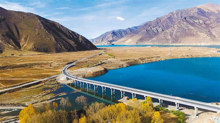 黨的十八大以來,西藏交通運(yùn)輸事業(yè)取得巨大成就,形成了縱橫交錯(cuò)、四通八達(dá)的綜合交通運(yùn)輸網(wǎng)絡(luò)。十年來,全區(qū)公路總里程由6.52萬公里增至12.07萬公里,高等級(jí)(高速)公路通車?yán)锍逃?8公里增至1105公里,以拉薩為中心的3小時(shí)綜合交通圈正加快形成,拉林鐵路建成投運(yùn),復(fù)興號(hào)首次開上高原……一條條團(tuán)結(jié)線、一條條幸福路,為我區(qū)經(jīng)濟(jì)社會(huì)發(fā)展提供了有力支撐?!?/p>