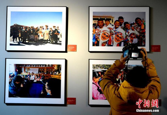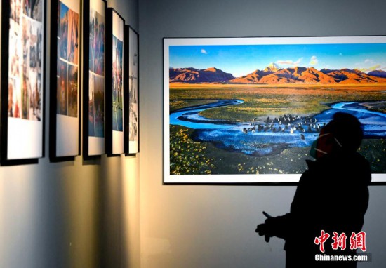 12月25日,第十五屆西藏珠穆朗瑪攝影大展在拉薩西藏牦牛博物館開幕。本次攝影大展共展出280件攝影作品,題材涉及人文、風(fēng)光等多個領(lǐng)域。創(chuàng)作手法涵蓋藝術(shù)、紀實、創(chuàng)意等諸多門類,作品風(fēng)格多樣、各具特色,彰顯了西藏地域文化特色。圖為觀眾正在欣賞展覽中的攝影作品。 李林 攝