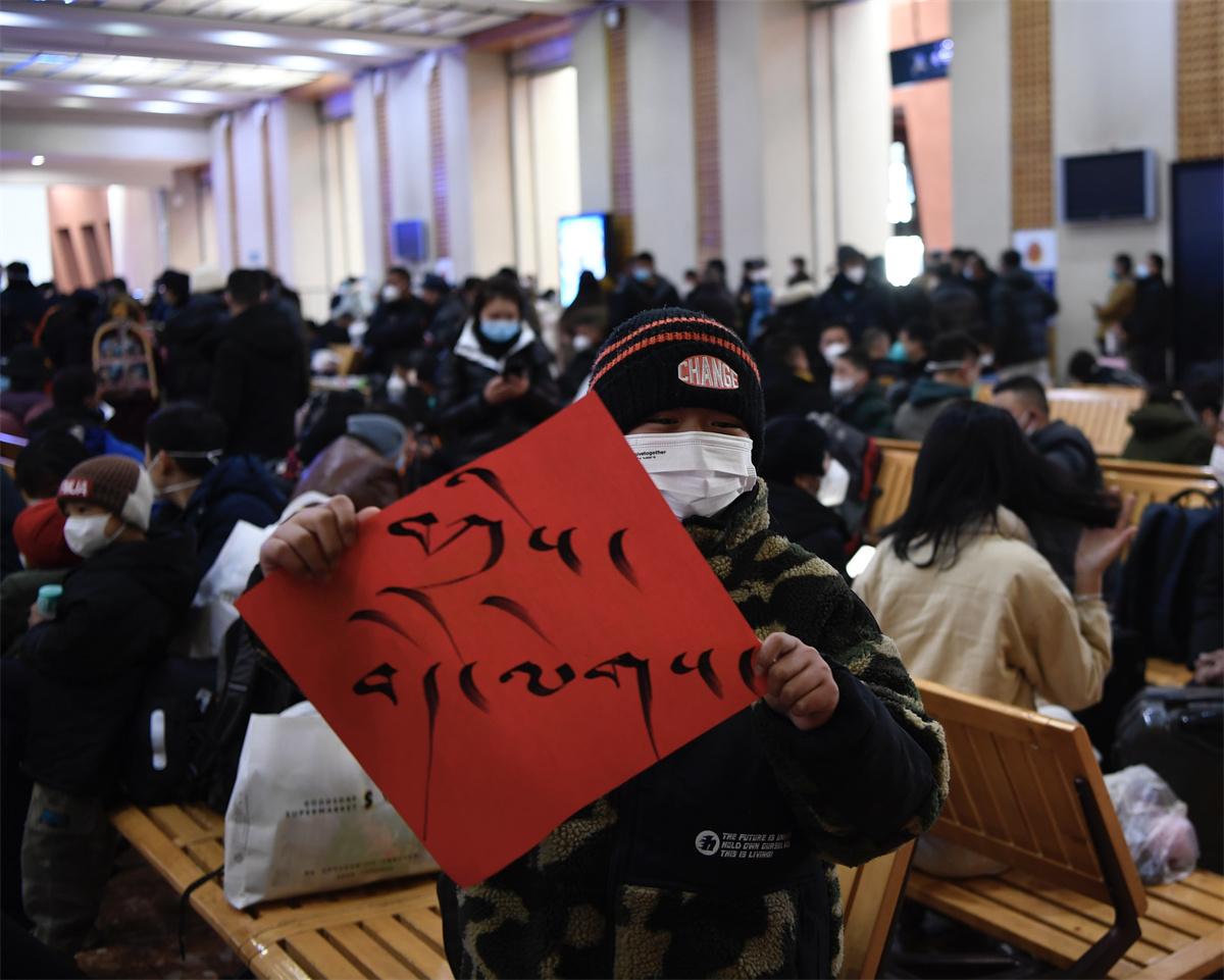 據(jù)了解,春運(yùn)首日,拉薩火車站“天路格?;ā秉h員突擊隊推出了兔年大吉心愿墻、新春猜謎送祝福、“春運(yùn)暖冬”行動等系列活動。