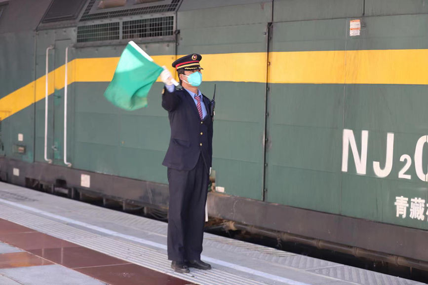 伴隨著一圈一圈揮動(dòng)的信號(hào)旗,列車緩緩駛出拉薩站。目送著列車安全、準(zhǔn)時(shí)地駛離后,全海文收攏信號(hào)旗又大步向站臺(tái)另一端走去。
