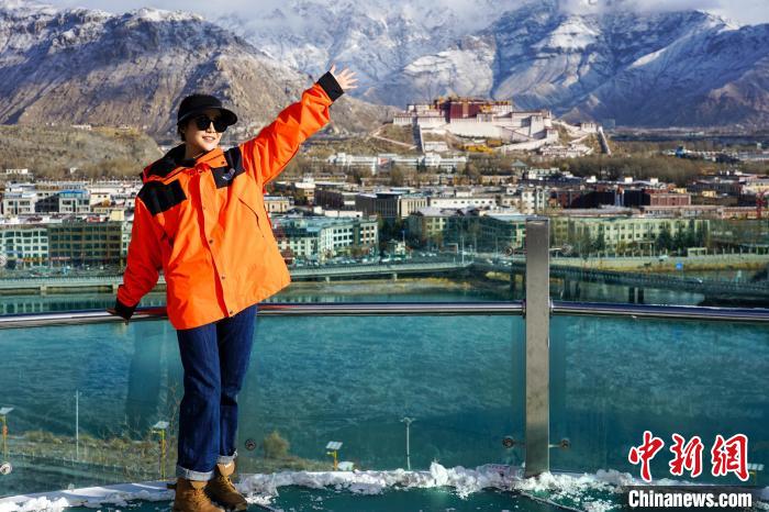 高原入春,“冬游西藏”正在進(jìn)行,拉薩旅游市場(chǎng)逐漸火熱。28日恰逢拉薩迎來(lái)一場(chǎng)大范圍春雪,不少游客在南山公園觀景臺(tái)拍攝雪后拉薩風(fēng)光?!澳憧?,布達(dá)拉宮后面的雪山太美了?!币幻慰瓦呌脝畏聪鄼C(jī)拍攝風(fēng)光,邊指揮同伴為自己拍照留念。
