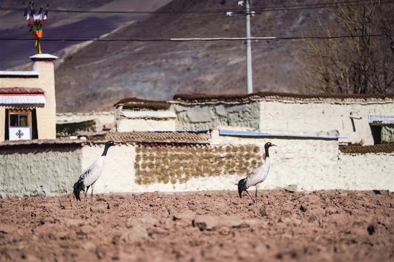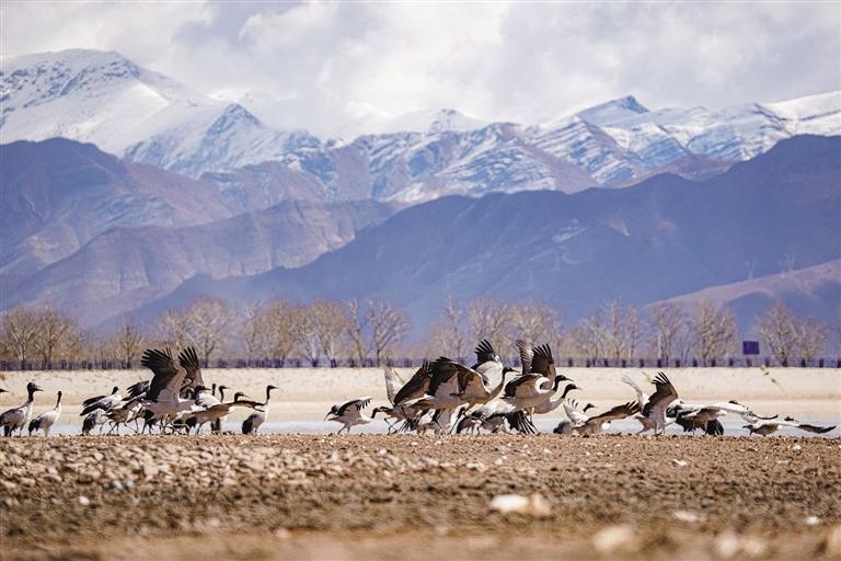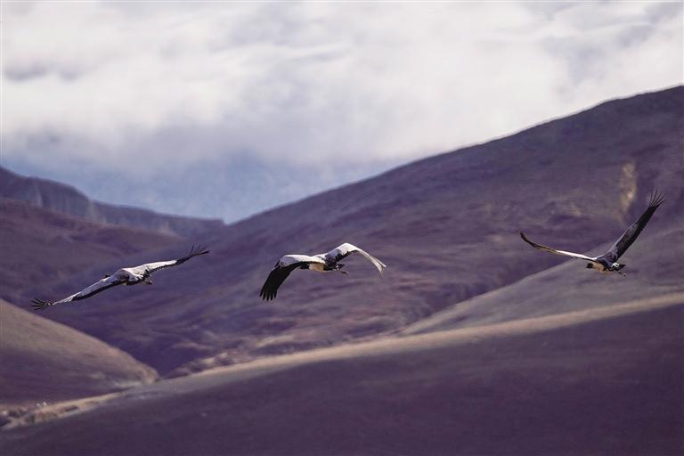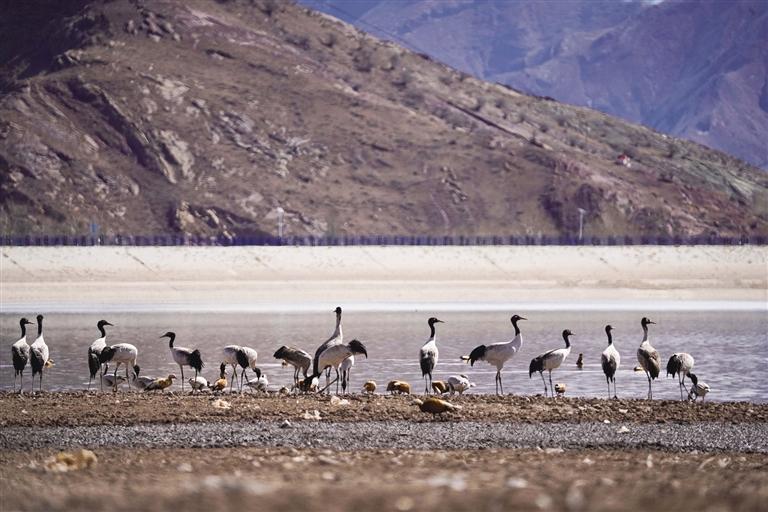 黑頸鶴是國家一級保護動物,在藏語中稱為“沖沖”。主要棲息在海拔2500米至5000米的高原、草甸、沼澤地帶。拉薩北部的林周縣平均海拔約4200米,是黑頸鶴的主要越冬地之一。最近這段時間,對拉薩市林周縣野保員們來說,一邊要忙自家的農活,一邊還要巡查候鳥情況。“已經有一小部分飛走了,估計再過半個月都會陸續(xù)飛走?!?月23日上午,野保員旦增告訴記者,在虎頭山水庫和卡孜水庫越冬的候鳥有一部分已經飛走了。野保員口中的“飛走”便是遷徙,遷徙是候鳥的本能,一年一年,跟隨時間的召喚,完成兩次遷徙:繁殖和越冬。
