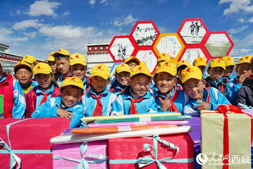 拉薩市當(dāng)雄縣小學(xué)的孩子們收到愛(ài)心人士送來(lái)的禮物。人民網(wǎng) 李海霞攝