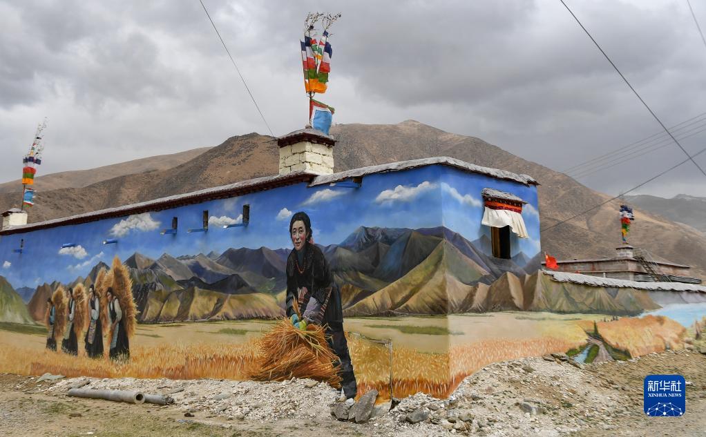 這是4月10日在拉薩市達(dá)孜區(qū)章多鄉(xiāng)恰村拍攝的墻畫。新華社記者 晉美多吉 攝