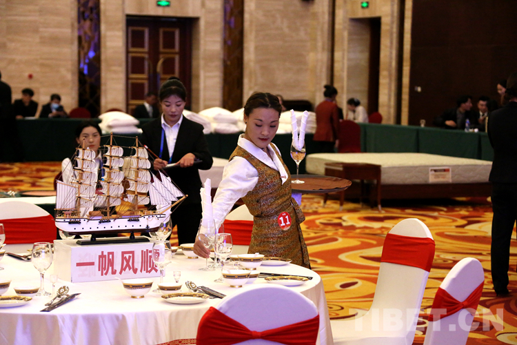 中國西藏網(wǎng)訊 5月11日,由西藏自治區(qū)旅游發(fā)展廳、西藏自治區(qū)總工會、共青團(tuán)西藏自治區(qū)委員會、西藏自治區(qū)婦女聯(lián)合會主辦,西藏旅游飯店業(yè)協(xié)會承辦的2023年西藏自治區(qū)星級飯店從業(yè)人員服務(wù)技能競賽在拉薩開賽。45名選手圍繞中餐宴會擺臺、西餐宴會擺臺、中式鋪床及夜床服務(wù)、前廳服務(wù)4個(gè)項(xiàng)目同臺競技。