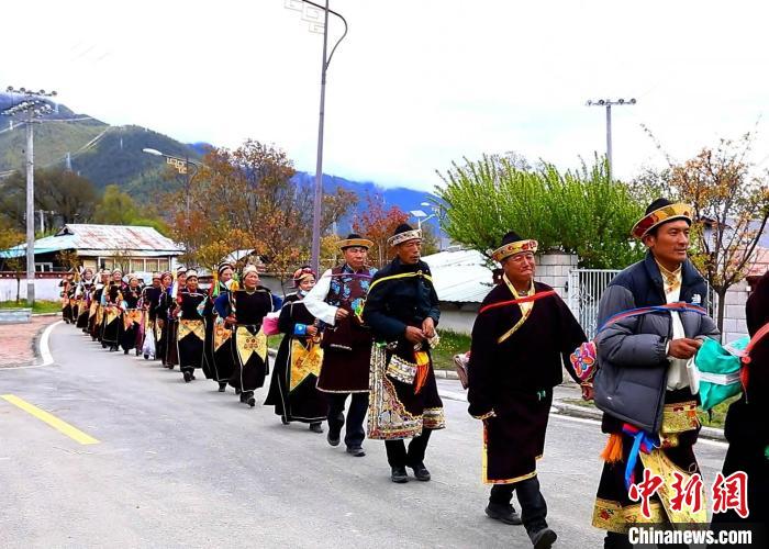 圖為村民背上經(jīng)文繞田。 鄧巴 攝