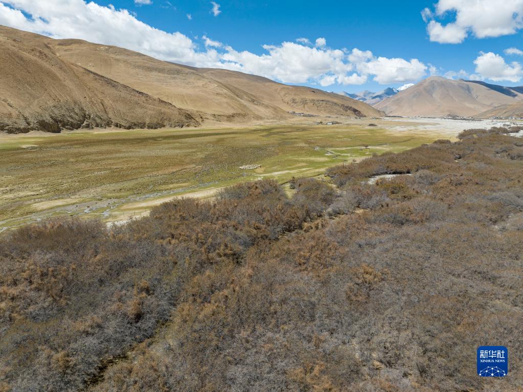 這是在珠峰國家級自然保護(hù)區(qū)內(nèi)拍攝的沙棘林和濕地(5月25日攝,無人機(jī)照片)。新華社記者 孫非 攝