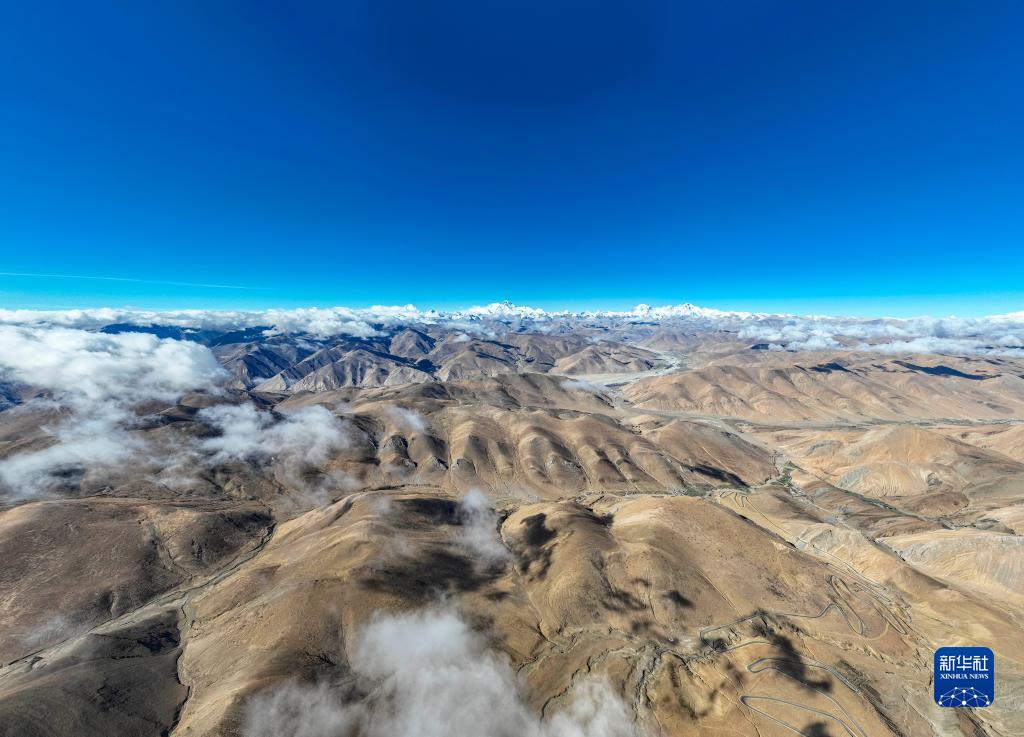 這是在海拔6000米左右高空拍攝的喜馬拉雅山脈群山(5月26日攝,無人機(jī)照片)。新華社記者 孫非 攝