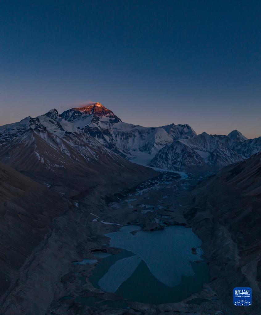 這是在海拔8400米左右高空拍攝的珠穆朗瑪峰(5月23日攝,無人機(jī)照片)。新華社記者 孫非 攝