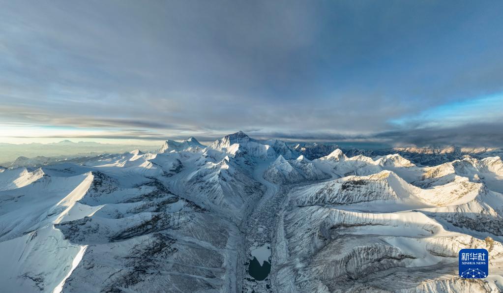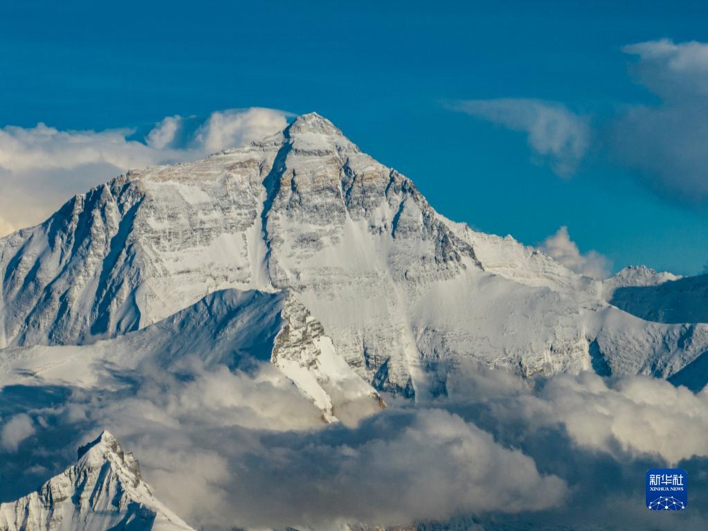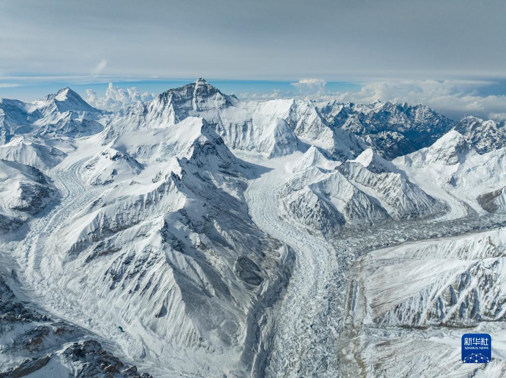 這是在海拔5700米左右空中拍攝的珠穆朗瑪峰(5月11日攝,無人機(jī)照片)。新華社記者 孫非 攝
