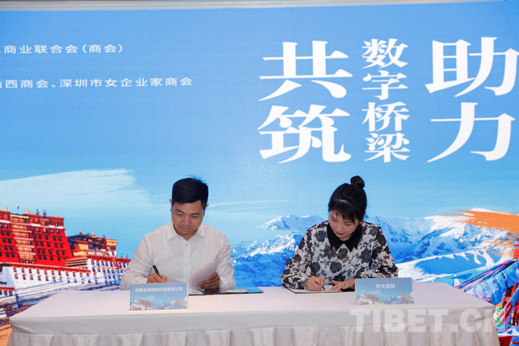 推介會(huì)上,北京援藏指揮部與深圳市山西商會(huì)簽訂駐點(diǎn)招商合作協(xié)議,進(jìn)一步開(kāi)展更深領(lǐng)域?qū)优c合作;西藏廣東商會(huì)、西藏建筑業(yè)協(xié)會(huì)、京藏產(chǎn)業(yè)園、西藏全通網(wǎng)絡(luò)科技有限公司、西藏星媒數(shù)字科技有限公司等西藏10家商會(huì)與企業(yè)分別與深圳市女企業(yè)家協(xié)會(huì)、深圳市數(shù)字經(jīng)濟(jì)產(chǎn)業(yè)促進(jìn)會(huì)、華大運(yùn)動(dòng)、深圳市伊登軟件有限公司、啟迪數(shù)字科技有限公司等10家深圳商會(huì)與企業(yè)簽訂合作協(xié)議,在商業(yè)、技術(shù)、市場(chǎng)等方面建立互促合作關(guān)系。