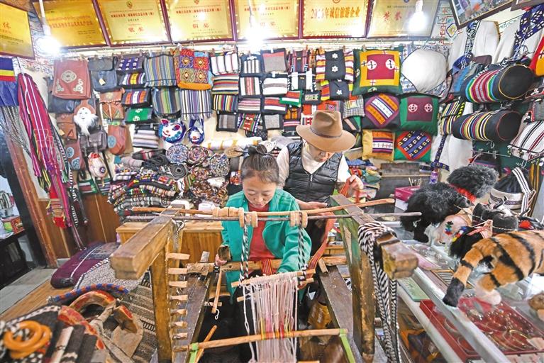 加入花瓣的藏紙、手工編織的藏毯、有唐卡元素的飾物……當(dāng)傳統(tǒng)文化與“創(chuàng)意”結(jié)合,“舊藝”也披上了時尚的“新衣”。