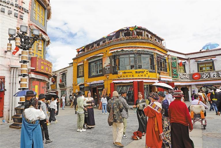 在這里,有林芝工布公園經(jīng)久不息的鍋莊舞、阿里獅泉河兩岸休閑散步的市民、山南昌珠廣場夜間文化和旅游消費(fèi)集聚區(qū)的喧囂……這里匯聚著高原360多萬各族群眾的鮮活生活之美。
