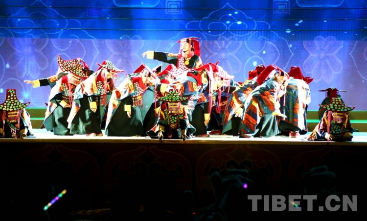 隨后盛大的開幕式文藝演出如期而至。演出共分為《悠遠古韻》《詩意微芒》《如炬經典》《輝煌盛世》四個篇章?!队七h古韻》篇章為大型情景表演,結合古格壁畫為開場表演,展現(xiàn)出阿里人民群眾的精神面貌和獨特的阿里神韻。《詩意微芒》匯集阿里地區(qū)諸多極具代表性的國家級非物質文化遺產節(jié)目,展現(xiàn)阿里地區(qū)悠久燦爛的古代文明遺存。《如炬經典》篇章通過不同舞蹈,展現(xiàn)阿里獨具特色的民間歌舞文化?!妒⑹老腋琛穭t展現(xiàn)了阿里地區(qū)以熱情昂揚的姿態(tài)在全力以赴推動建設雪域高原“西部明珠”中取得的一系列可喜的成績?! ?/p>