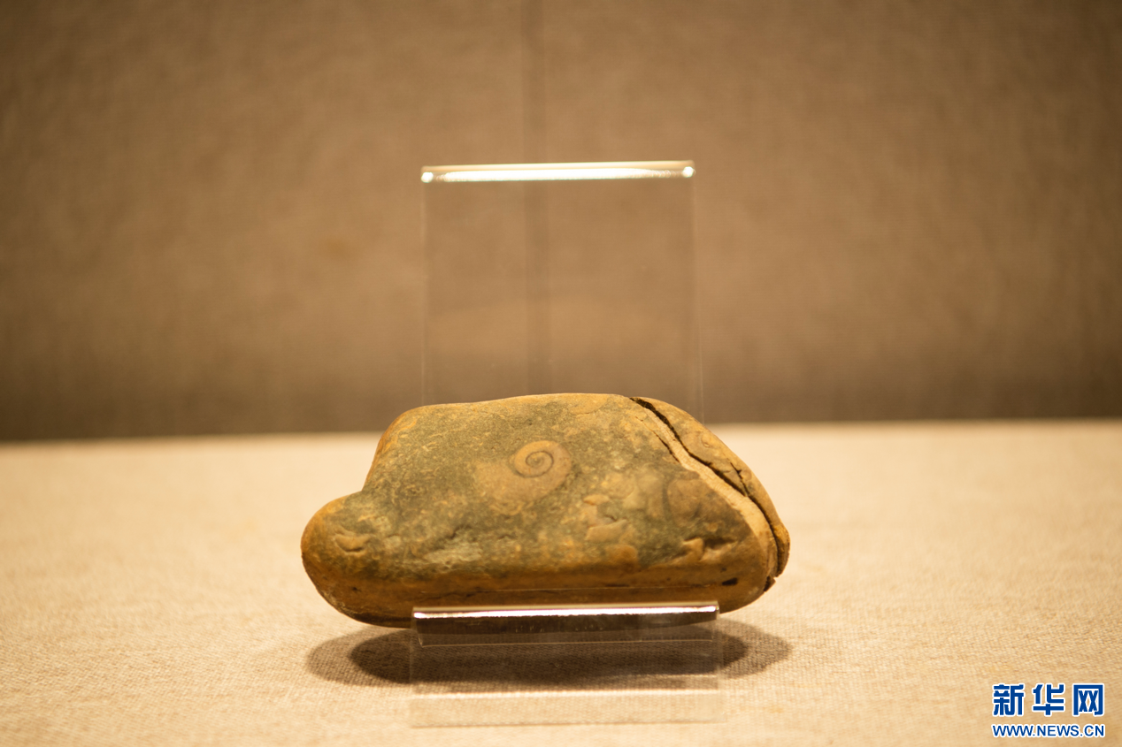 西藏阿里博物館展品“變質(zhì)巖·含鸚鵡螺化石”(8月23日攝)。新華網(wǎng) 旦增努布 攝