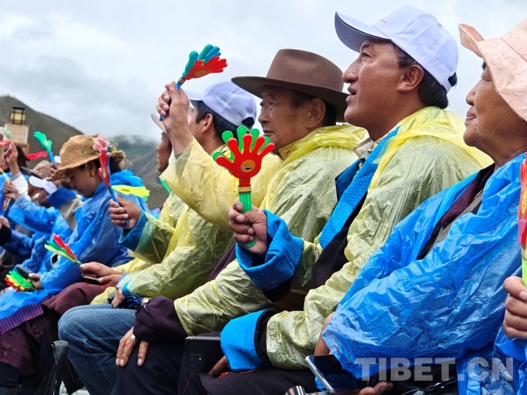 當(dāng)天上午,雨水時(shí)急時(shí)緩下著。當(dāng)?shù)孛癖姄沃鴤恪⑴暌略缭缏渥却莩鲩_始。白瑪次仁是附近的村民,他告訴記者:“我平時(shí)就喜歡唱歌和跳舞,所以收到有文藝演出的通知就早早過來觀看,畢竟平時(shí)很少看到如此大型的演出?!?/p>