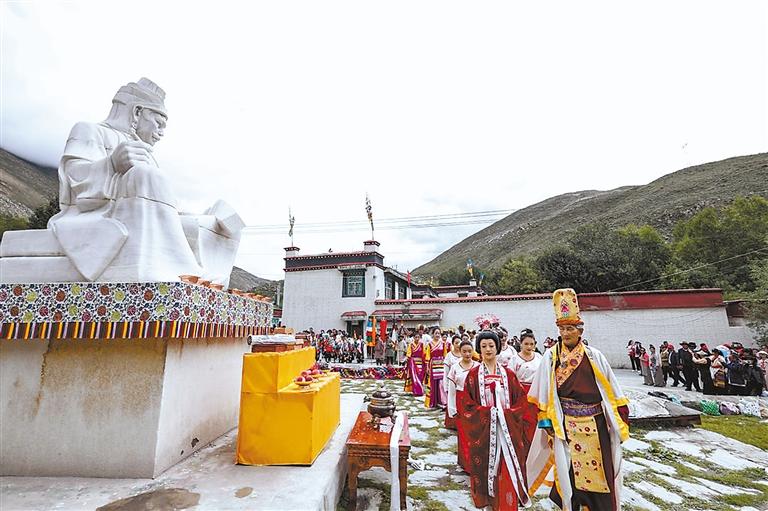 在特色巡游活動中,游客跟隨隊伍共同前往水磨長廊感受尼木吞巴1300年的歷史文化。