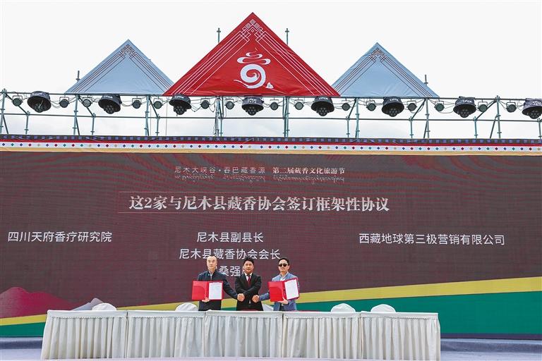 活動當天,為讓尼木藏香文化得以更好地傳承下去,尼木縣委副書記、縣長次旺多杰為祖祖輩輩、世世代代用堅守傳承文化的10位非遺傳承人授牌“致敬傳統(tǒng)手工藝人”。在集中簽約儀式上,天府香療研究院、西藏地球第三極營銷有限公司與尼木縣簽訂戰(zhàn)略框架性協(xié)議,深度開發(fā)藏香產業(yè);中國能源建設集團西北電力建設工程有限公司、國家電投集團西藏能源有限公司、北京能源國際控股有限公司、北京龍藝匯鑫科技有限公司四家企業(yè)與尼木縣人民政府簽訂框架協(xié)議,協(xié)議投資合計超150億元。
