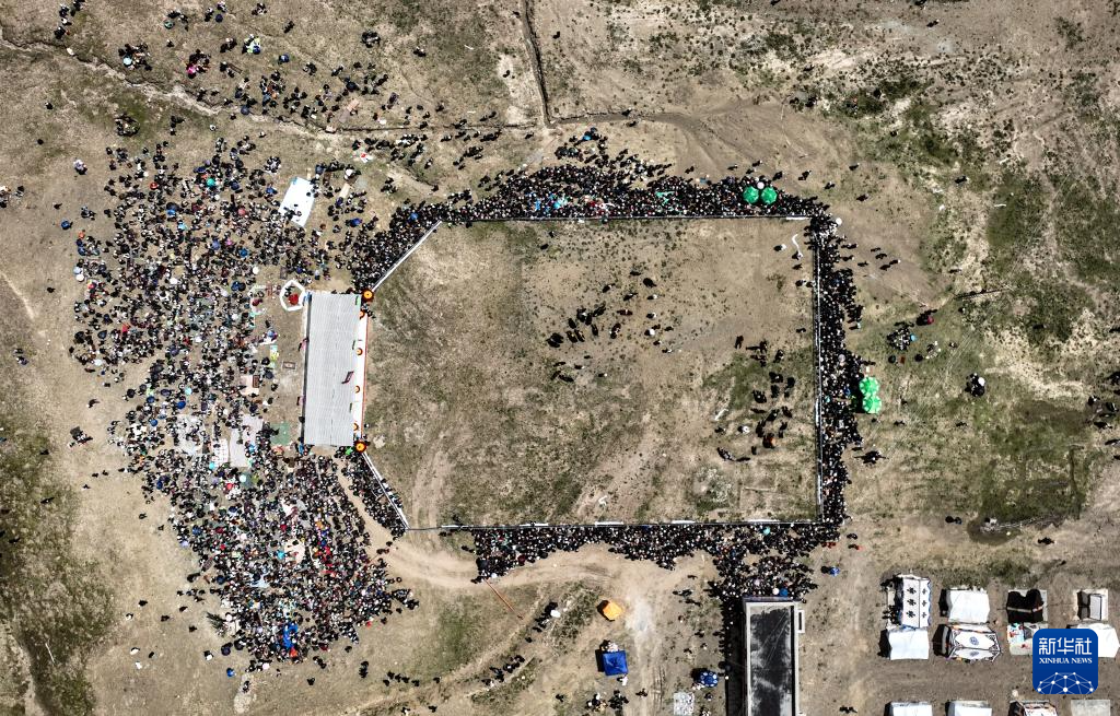 9月7日拍攝的白朗縣者下鄉(xiāng)斗牛比賽(無人機(jī)照片)。新華社記者 晉美多吉 攝