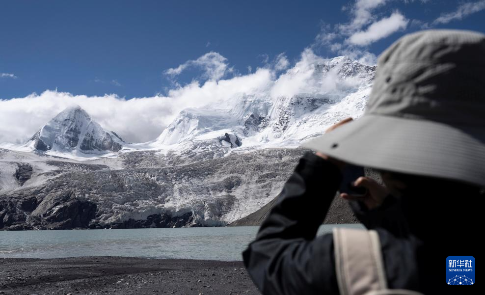 游客在拍攝薩普雪山(9月7日攝)。新華社記者 關(guān)明輝 攝