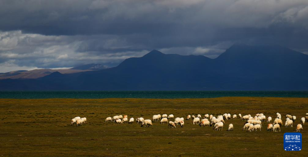 錯(cuò)那湖畔的羊群(9月22日攝)。新華社記者 曹檳 攝