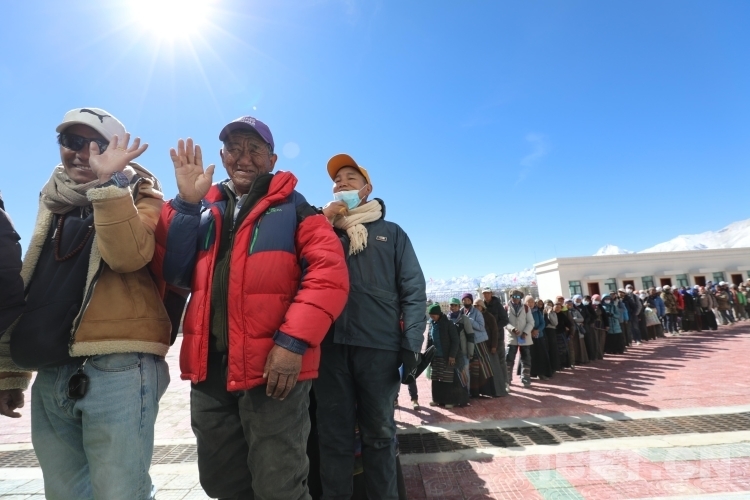 圖為在里孜口岸開通首日等待通關的群眾排起長龍 攝影:郭遠敬