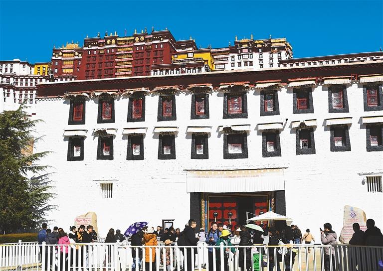 2023年11月1日至2024年3月15日為“冬游西藏”市場促進活動時間,在此期間,除寺廟景區(qū)外,西藏自治區(qū)所有A級景區(qū)免費游覽。活動啟動以來,布達拉宮作為游客來藏旅游的首選之地,日均接待量達4000余人次。 圖為游客正在有序進入布達拉宮。 記者 洛桑 攝