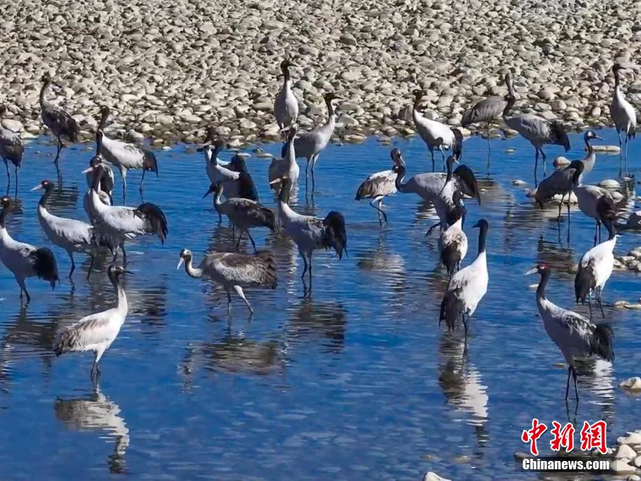 西藏米林迎來大批黑頸鶴越冬