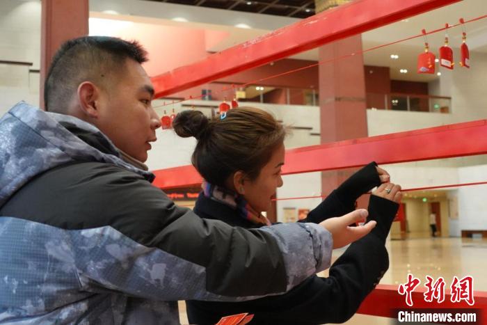 當(dāng)日上午,西藏博物館中央大廳聚集了許多參加現(xiàn)場活動的游客。游客以隨機(jī)抽福袋、領(lǐng)獎品的形式參與活動。參與者紛紛表示在新年的第一天開展這樣的活動很有意義。針對元旦期間來館參觀的游客,西藏博物館還制作有館藏文物元素的主題紀(jì)念賀卡供游客留念。