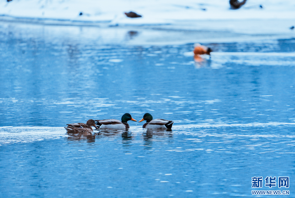 在扎塘魯錯(cuò)湖面棲息的野鴨(1月3日攝)。新華網(wǎng)發(fā) 姚力 攝